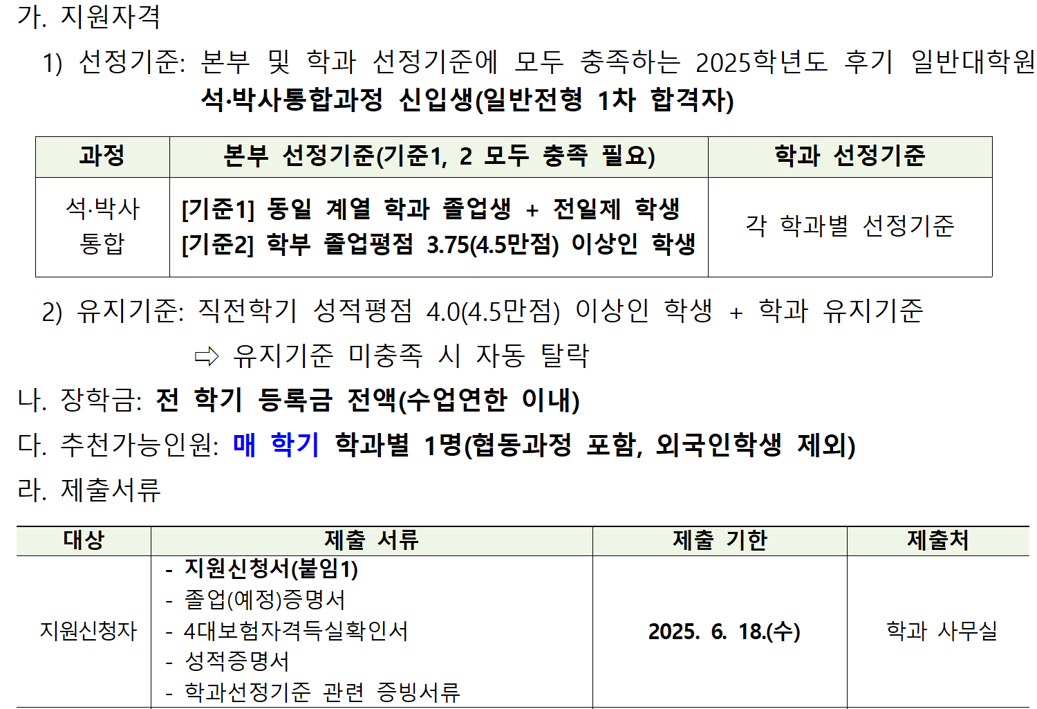 fnctId=bbs,fnctNo=1087 글번호 918114 [장학] 2025년 상반기 대학원 총장명예장학 선발 안내 작성일 2025.05.27 수정일 2025.05.27 작성자 미디어커뮤니케이션학과 조회수 280 첨부파일 2025년 상반기 대학원 총장 명예장학(CNU GS-PHF) 선발 계획.hwp 미리보기